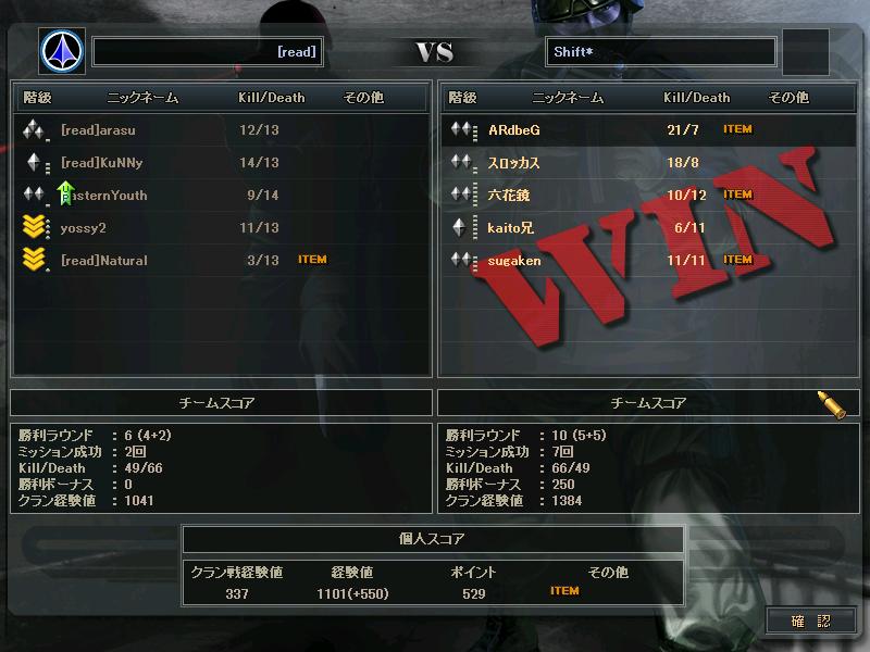 どんまいって感じで攻めの2、3ラウンド目くらいからは5:4でした。