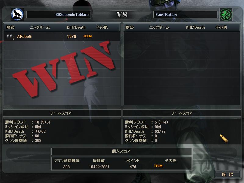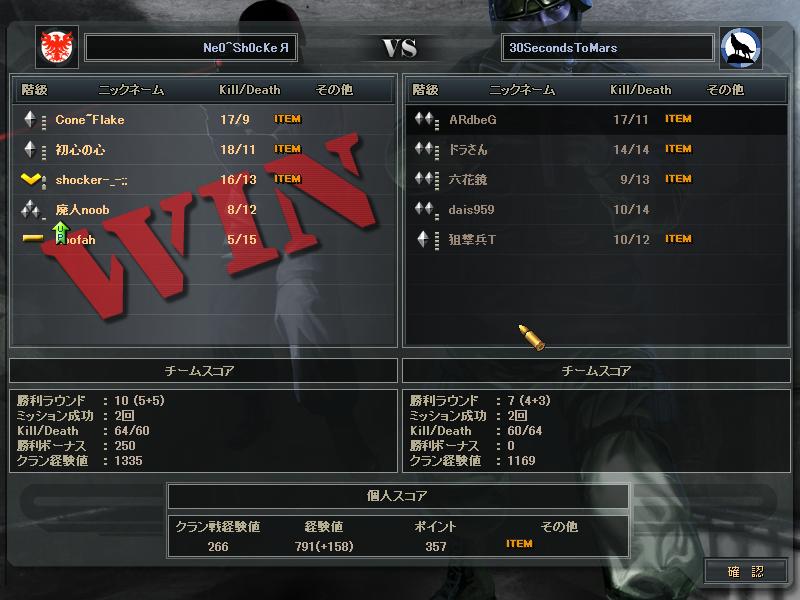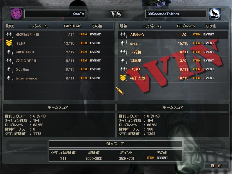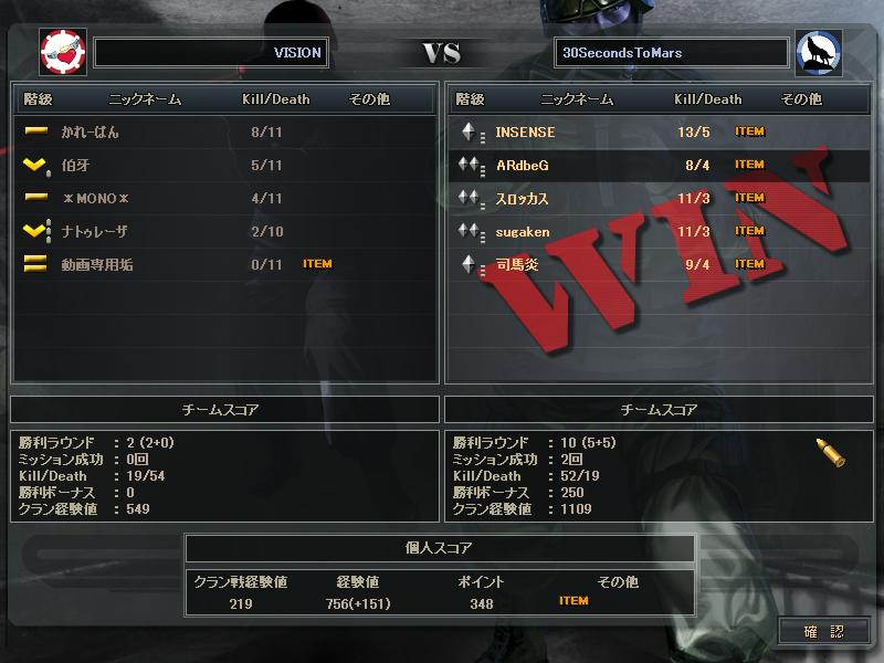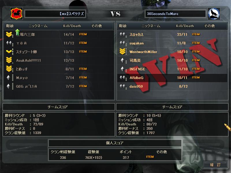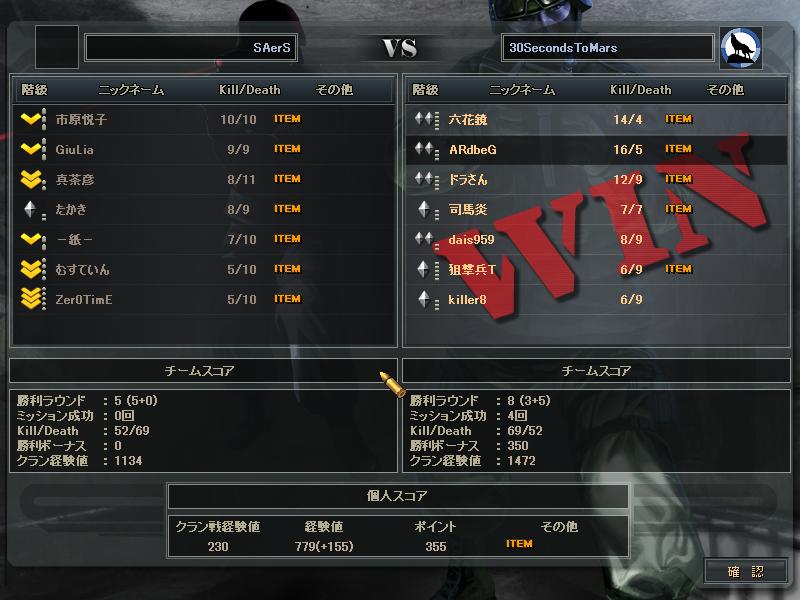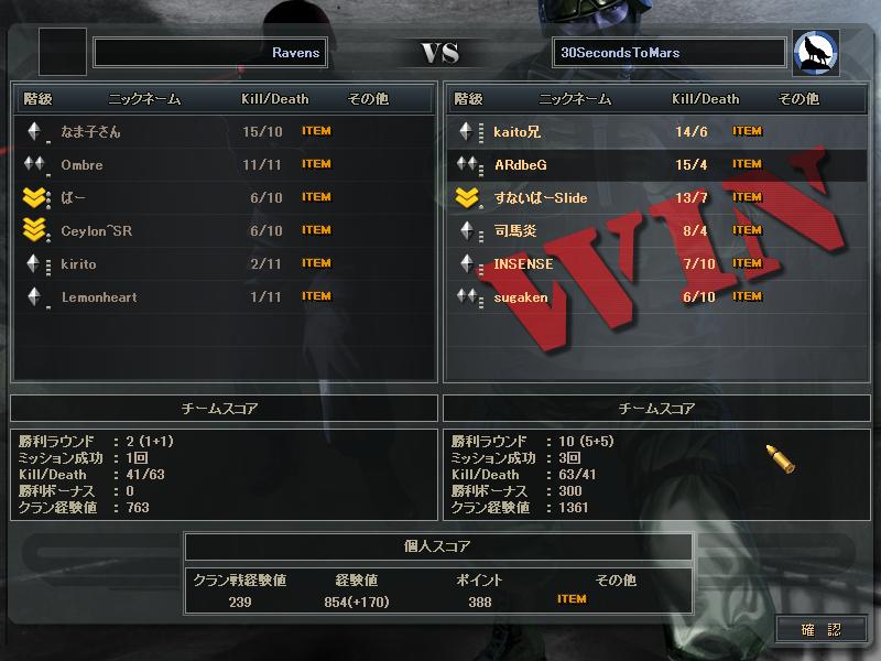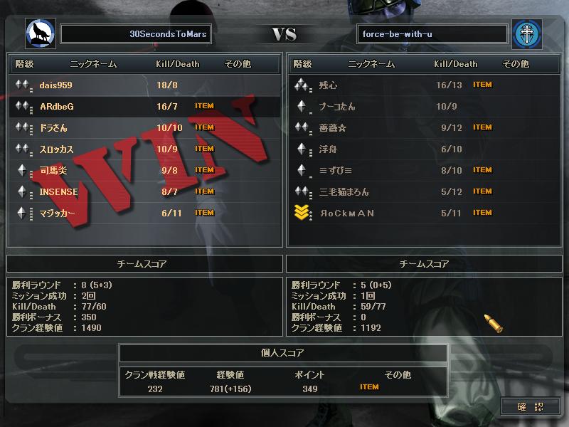 あとSVさんとのCWは、SVさんの方がまず1人落ち、こっちも1人落ち、俺らが守りになったときこちらが1人落ち、最終的にはSVさん5人の30s4人だったかな。