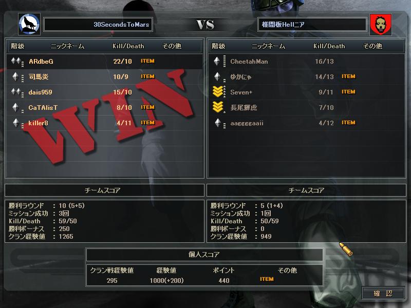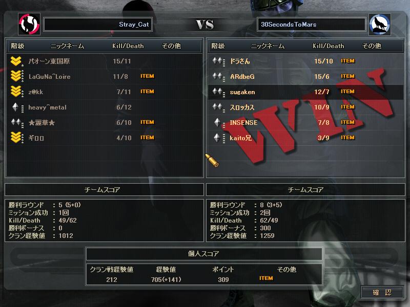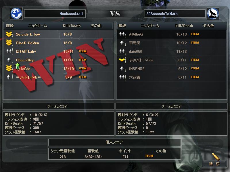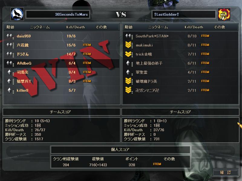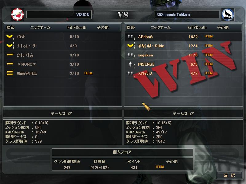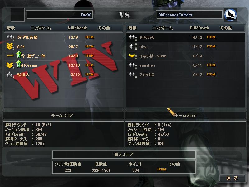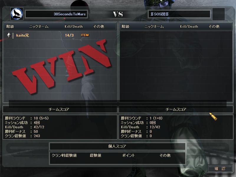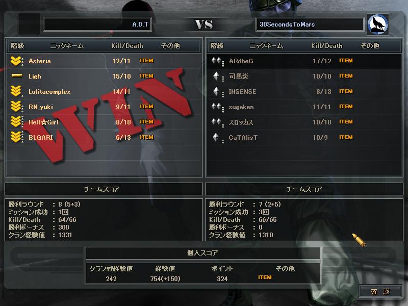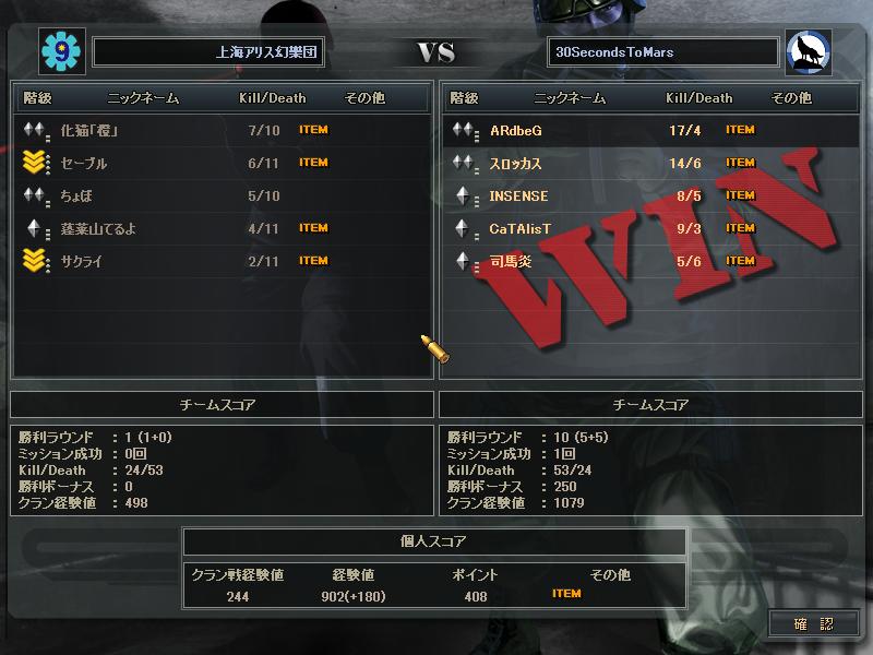 あとSVさんとのCWは、SVさんの方がまず1人落ち、こっちも1人落ち、俺らが守りになったときこちらが1人落ち、最終的にはSVさん5人の30s4人だったかな。